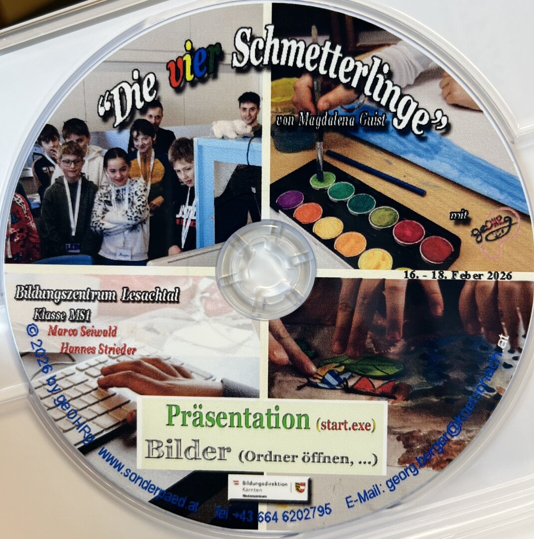 Im Deutschunterricht entstanden zuvor zahlreiche Drehbücher, aus denen jenes von Magdalena Guist ausgewählt wurde. Der entstandene Film trägt den Titel „Die vier Schmetterlinge“. Im Zuge des Projekts konnten die Schüler und Schülerinnen nicht nur ihrer Kreativität freien Lauf lassen, sondern auch viel über Kameraarbeit und Filmtechnik lernen. Da das Trickfilmprojekt genau in die Faschingswoche fiel, wurde sogar am Faschingsdienstag gut gelaunt und verkleidet weitergearbeitet, wie das beigefügte Foto zeigt.